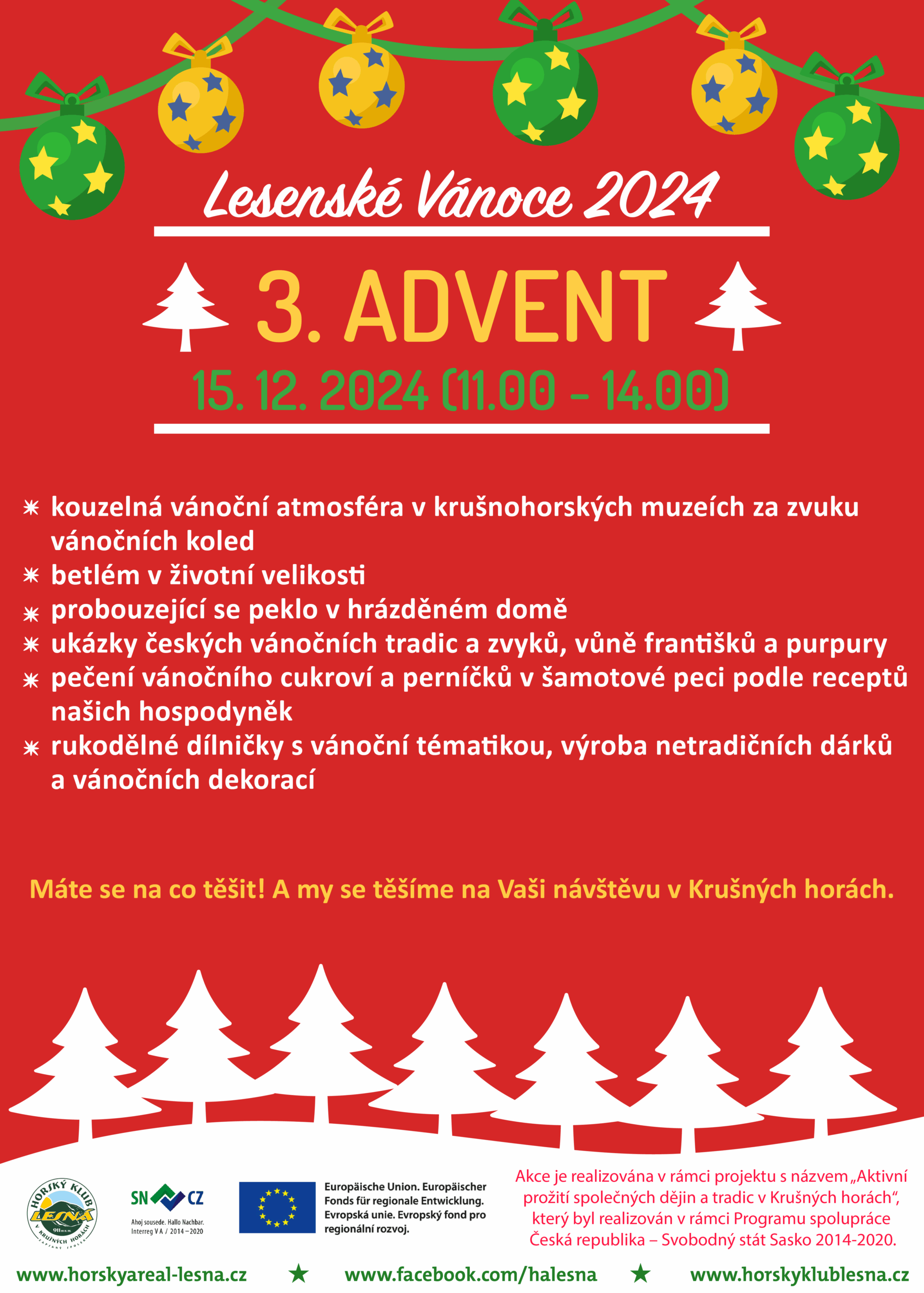 Těšíme se na Vás na předposlední letošní, v pořadí již 3. adventní neděli u nás v Lesné.